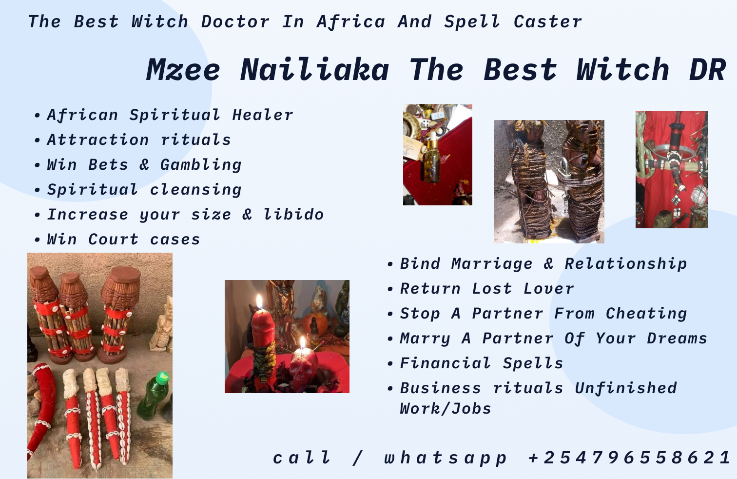 Herbalist Naliaka has helped very many people all over the world change their financial status using his strong herbs and spiritual powers that he inherited from his ancestors of the Sangoma in South Africa and the Digo from coastal Kenya. Don`t suffer in silence with worst financial status just get in touch with Dr. Naliaka